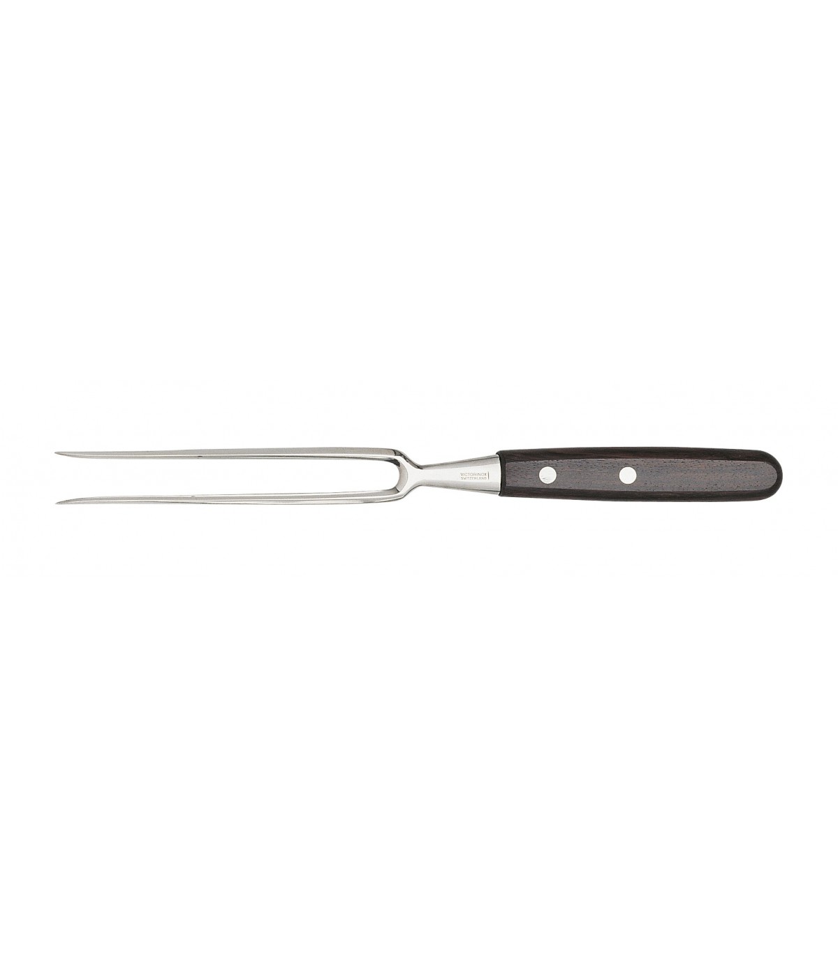 tous grands chefs de cuisine se vent de posséder cette fourchette forgée Victorinox à portée de main pour une vérification de la cuisson des ingrédients ou d'un mets. Victorinox a forgé cette fourchette avec le plus grand soin dans ses ateliers Suisses. Elle se décline avec une lame en acier inoxydable, intégré d'un éclatant manche en bois de palissandre fixé par 2 rivets ou en fibrox noir.