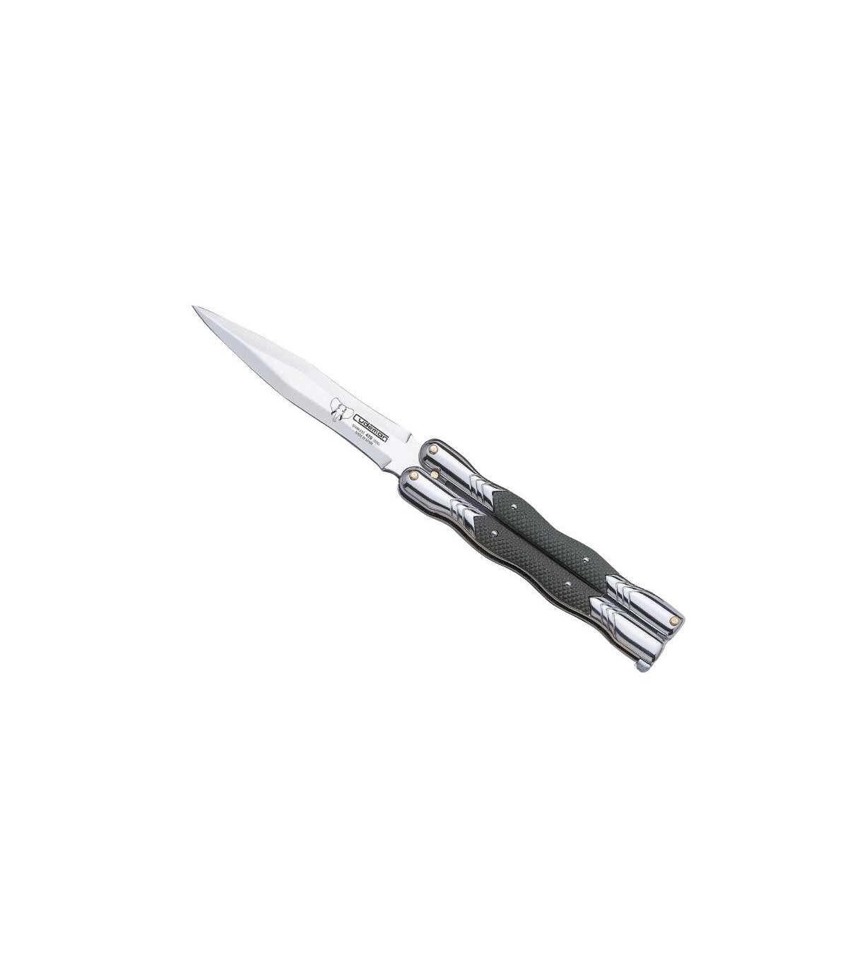 Cudeman vous a concocté ce superbe couteau papillon pour votre détente personnelle. Sa lame puissante d'une longueur de 9,5 cm est en acier inoxydable 420. Son manche d'une longueur de 12,5 cm avec plaquettes nylon Vert ou plaquettes stamina est harmonisé avec des trous d'allègements sur les 2 tiges du couteau. Il se présente avec une ouverture et fermeture spéciale du système papillon. Le manche est accouplé sur un axe consentant une fermeture en rabattant les deux branches sur la lame avec un système de blocage. Le déploiement est actionné sur les parties de part et d'autre de la lame.