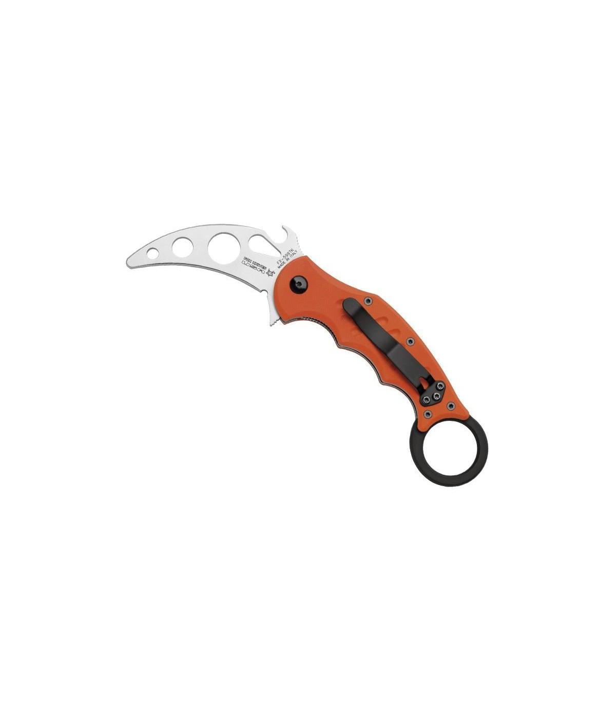 Fox Production fx.599tk Couteau Karambit, lame Hawkbill à trous acier 420, manche 10 cm (12 cm avec anneau) G10 orange