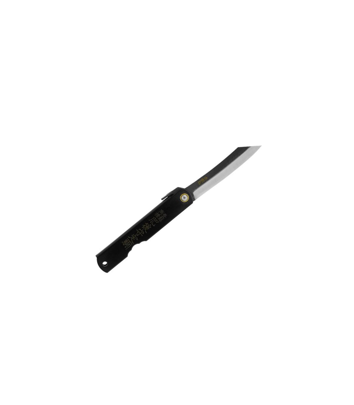 higonokami 916.n Couteau lame semi-brute acier carbone San Mai SK2 (laminé 3 couches) manche 10 cm acier noir noir