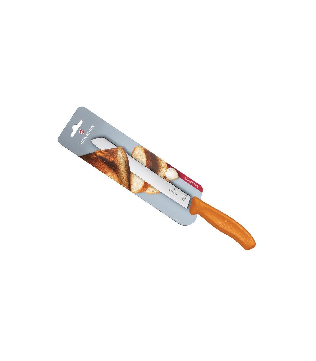 Victorinox 6.8636.21l9b Couteau à pain, lame à dents 21 cm inox, manche polypropylène orange, sur carte.