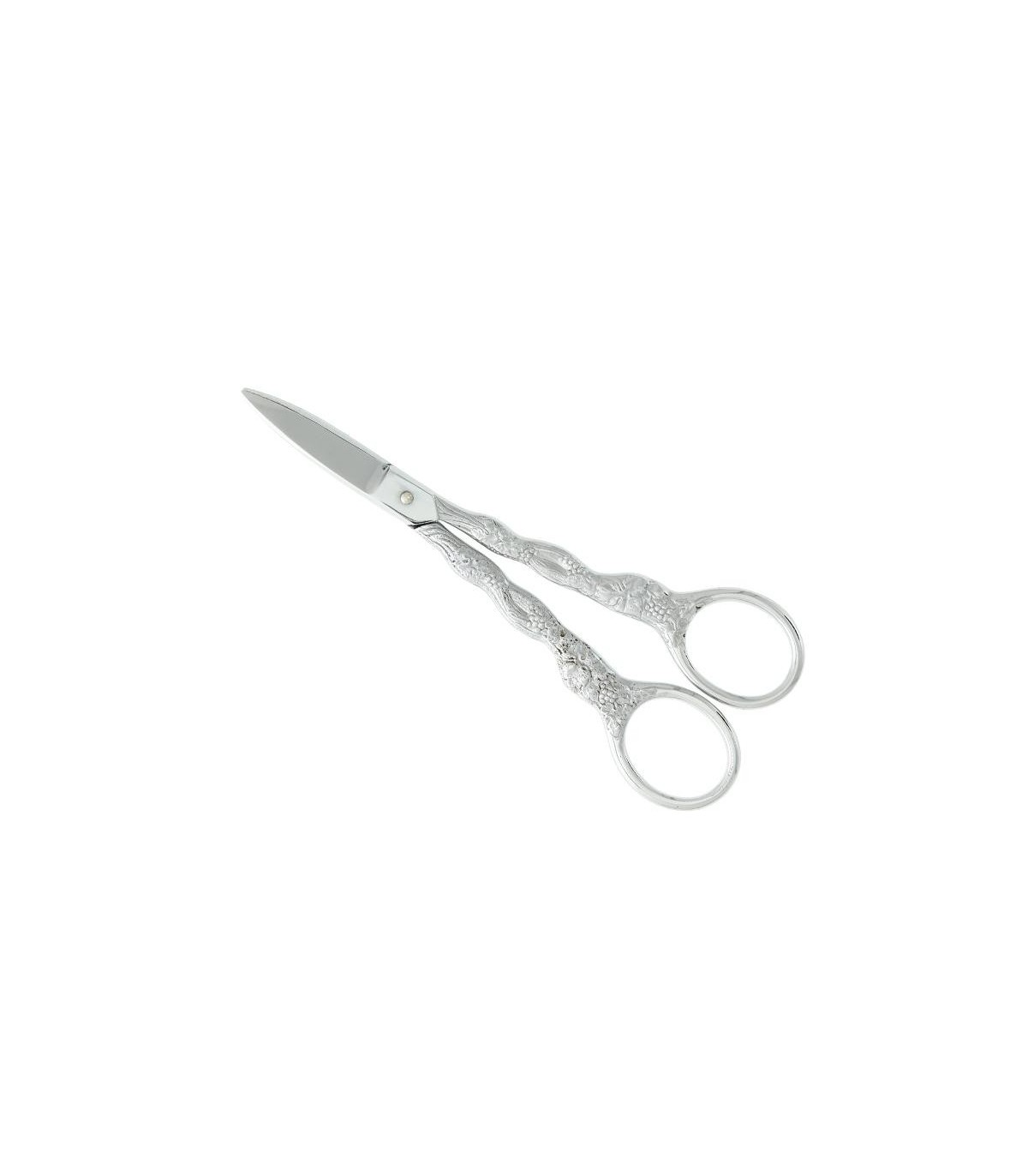 Ce ciseaux à raisin d'une taille de 16 cm en acier chromé présente la particularité de posséder des branches ouvragées.