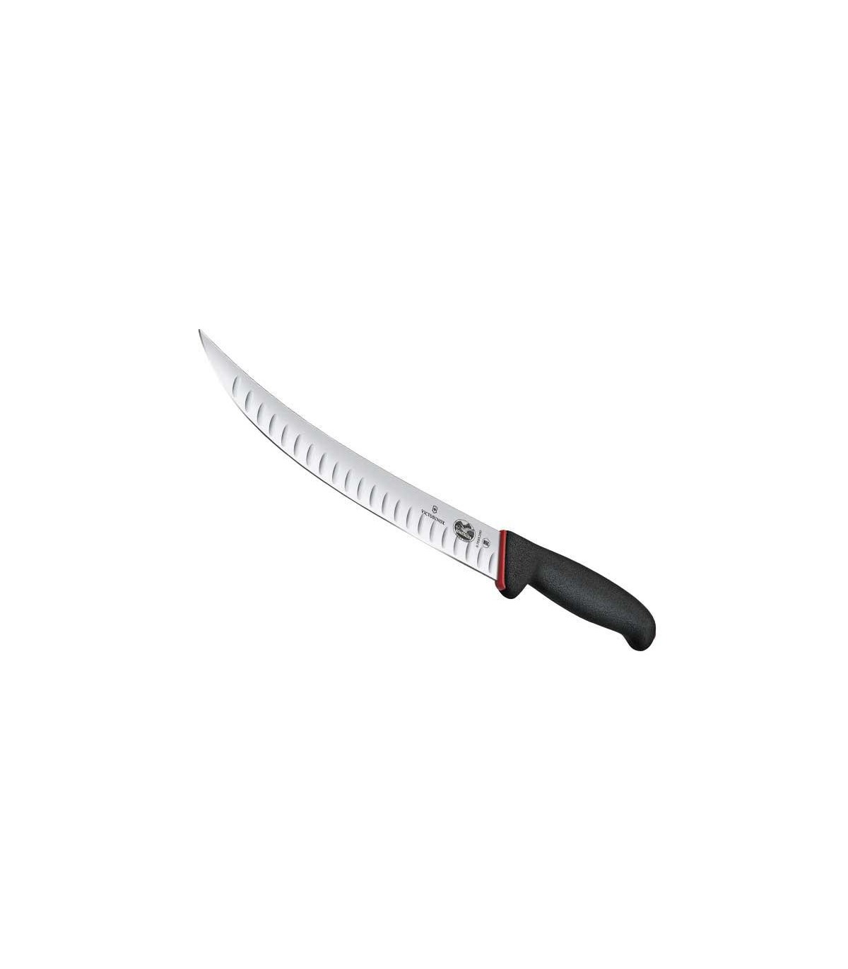 Victorinox 5.7223.25d Couteau abattre, lame étr. alvéo. 25 cm inox, man bi-mat. axe polypro. rouge grip elasto. thermo noir